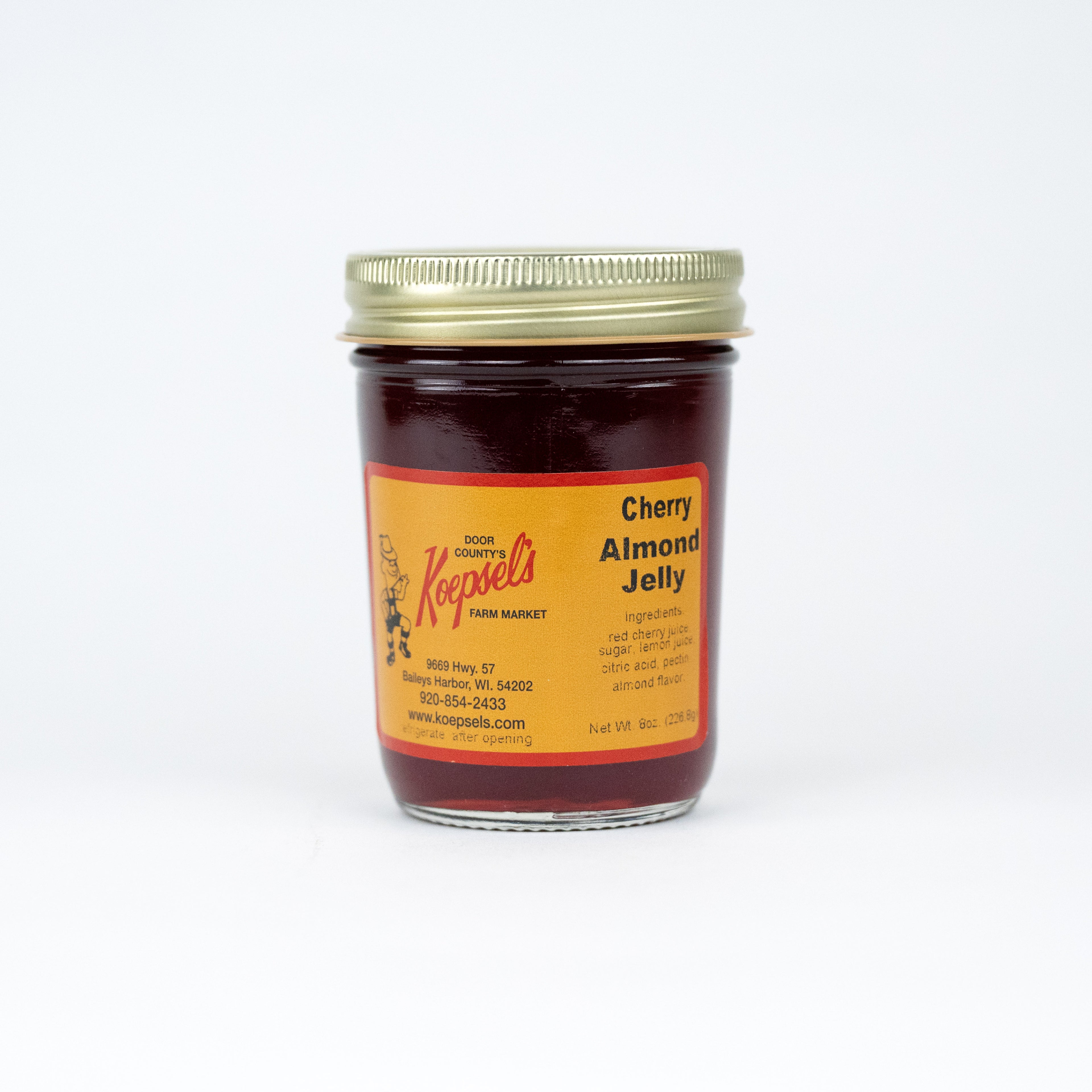 Sweet local Door County cherries blend with delicate almond essence in this elegant jelly that tastes like a bakery in a jar. The smooth, clear jelly captures the bright cherry flavor while subtle almond notes add depth and sophistication to every bite. This classic pairing brings a touch of elegance to simple pleasures and works beautifully in both sweet and creative applications. Perfect on buttered toast, croissants, or Danish pastries, stirred into hot tea, or used as a glaze for pound cake.