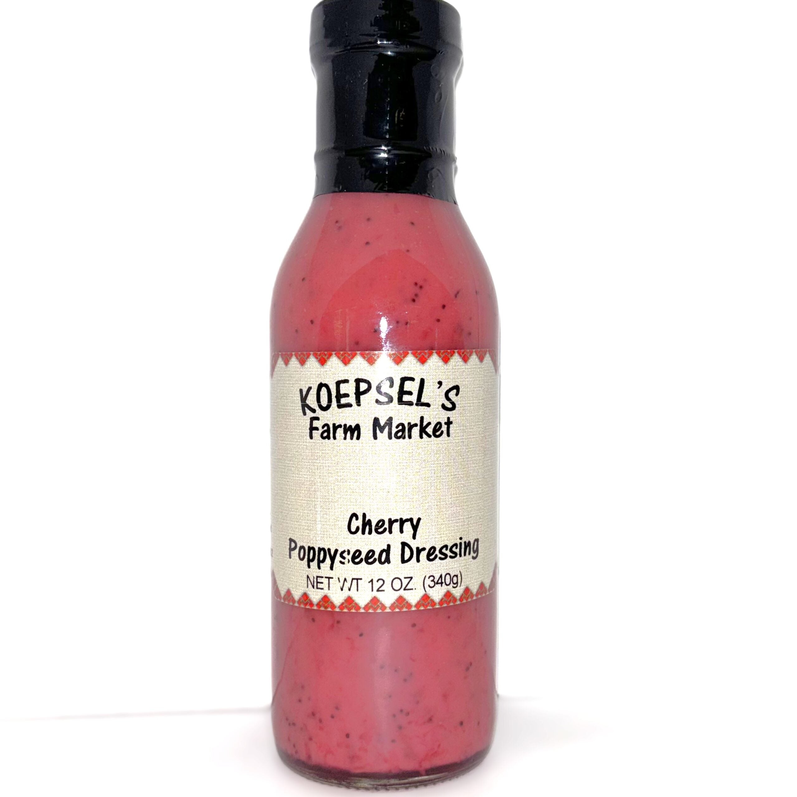 Sweet cherries and crunchy poppyseeds create our distinctive Cherry Poppyseed Dressing. This vibrant blend brings fruity flavor and subtle texture to summer salads, grilled chicken, and fruit plates. Refrigerate after opening to preserve its orchard-fresh taste.
