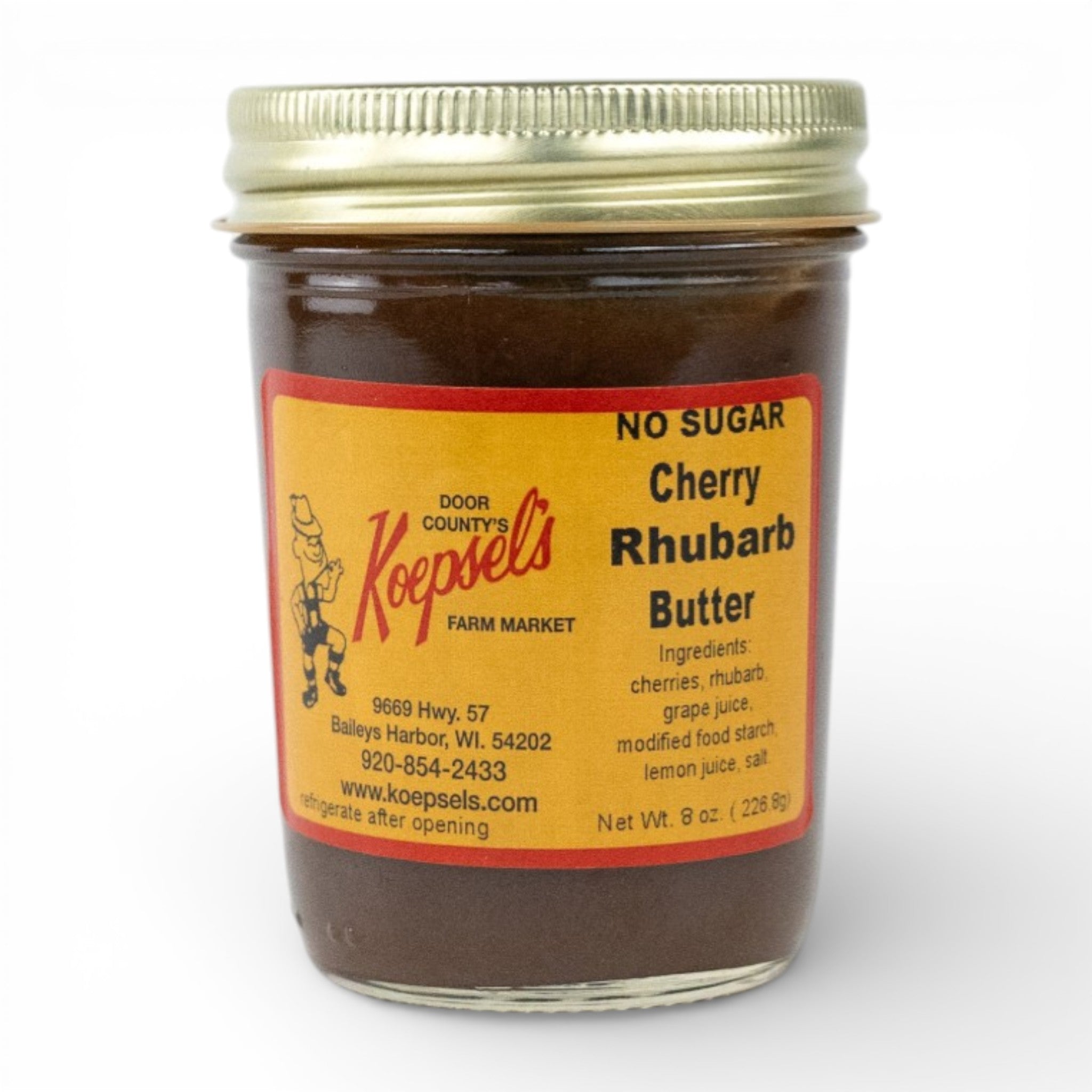 All the deep, tangy-sweet flavor of Door County cherries paired with the bold, earthy bite of rhubarb — with no added sugar. This slow-cooked fruit butter has a silky smooth, richly concentrated texture that spreads beautifully and delivers a complex, layered flavor that's uniquely its own. Made with real cherries, rhubarb, grape juice, and lemon juice, it's a naturally delicious way to enjoy two classic springtime fruits year-round.